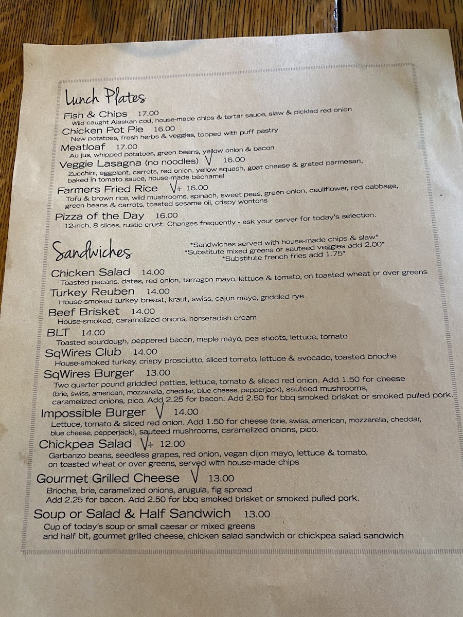 SqWires shines brightly with its diverse menu, making it an ideal choice for any palate. Start your culinary journey with their delicious Baked Onion Soup, oozing with rich flavors, or experience the refreshing Mixed Greens Salad, a delightful combination of grilled and chilled green beans, cherry tomatoes, and crumbled feta, all artistically dressed in a house-made basil red wine vinaigrette. For a hearty main dish, indulge in the Chicken Pot Pie, brimming with fresh herbs, vegetables, and a flaky puff pastry crust — a true comfort food that will make you feel right at home.