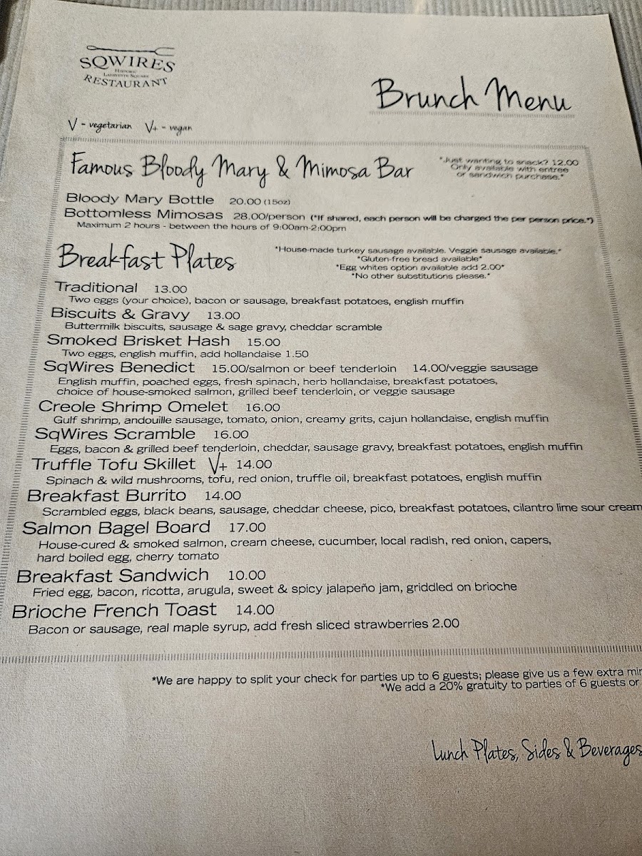 No matter what brings you to SqWires, whether it's a leisurely brunch, a cozy dinner with friends, or a lively gathering before a show, you can expect an enjoyable atmosphere, delectable food, and service that aims to please. So book your reservation and prepare to indulge in the flavors of this St. Louis treasure, where every meal is an experience waiting to be savored!